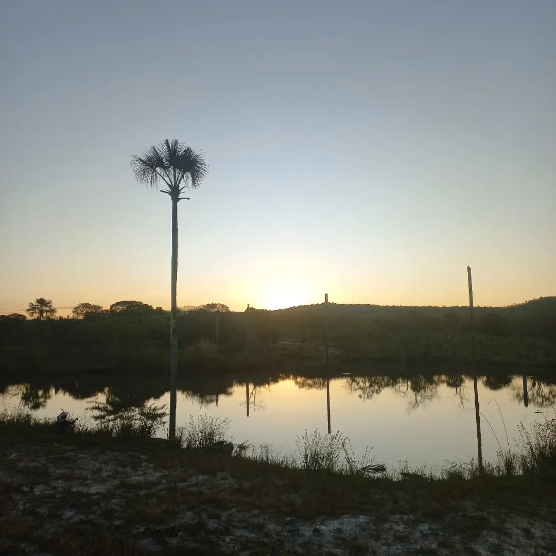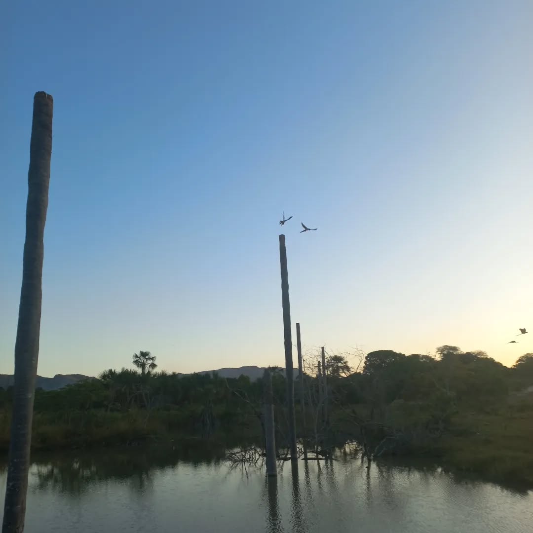 E ali então já quase na chegada no quadro q pintou o poente, foi encarando o buritizal morto q entendi que eles tinham sido sufocados pelo açude q Reny fez pro gado beber, os mesmos Buritis q caídas as folhas agora eram apoio para os ninhos das araras q se reuniam em seus topos secos por excesso de água, água q naquela hora eu custei a ver escurecendo dona Elia pescava as piaba pro jantar.